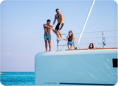 • catamarans in perfect condition strictly chartered with permanent crew.